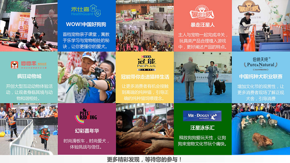 “傳播文化,關愛寵物,推廣品牌”文化節重在強調消費者的參與感和互動感,設置寵物觀賞區和豐富的體驗活動專區,打造屬于寵物的“大”節日,采購+游樂,一站式完成。
