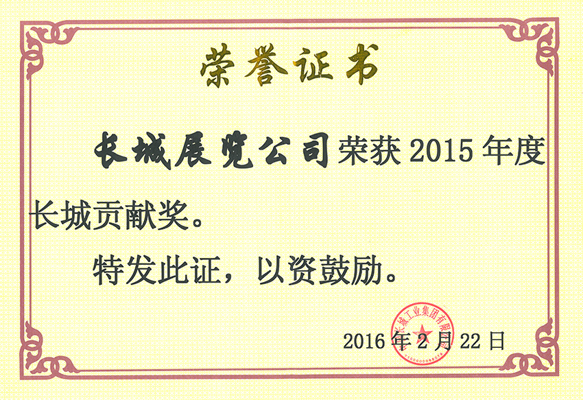 公司榮獲2015年長城貢獻獎